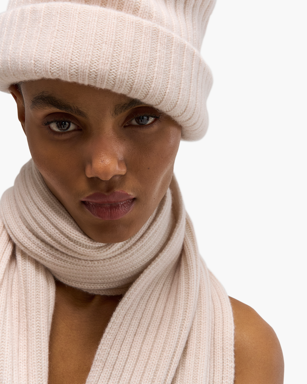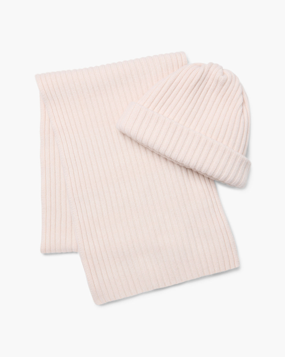 Elevate your cold-weather essentials with this refined cashmere beanie and scarf pairing. Crafted from premium 100% cashmere in a striking bi-color plaited design, this coordinated set delivers uncompromising softness and warmth. An ideal choice for discerning gift-givers in this holiday season.