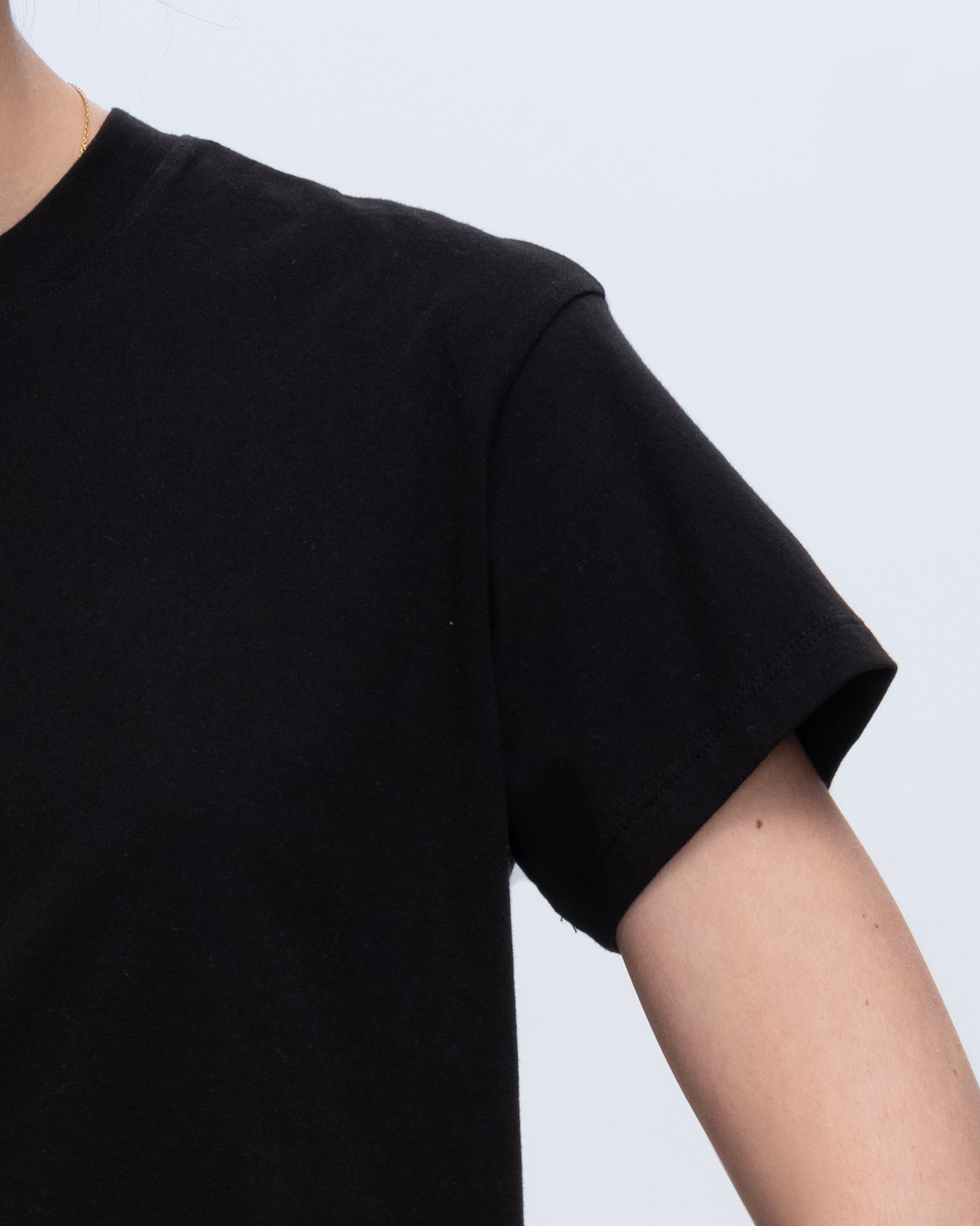 The Classic Jersey Short Sleeve Boy Tee is done in a luxe cotton jersey. It combines the weight and shape of a men's piece with the fit of a women's tee. It features a slightly cropped, boxy shape with longer and wider cut sleeves.