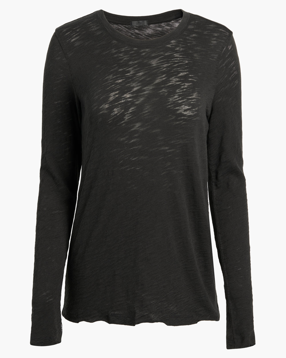 The Slub Jersey Long Sleeve Destroyed Wash Tee gets its texture from the uneven yarns of our unique Peruvian Cotton. It features a subtle scoop neck, imperfectly distressed hem and sleeve cuffs, and just the right amount of sheer. The loose weave of this heavier Cotton molds modestly to the body offering the perfect drape.