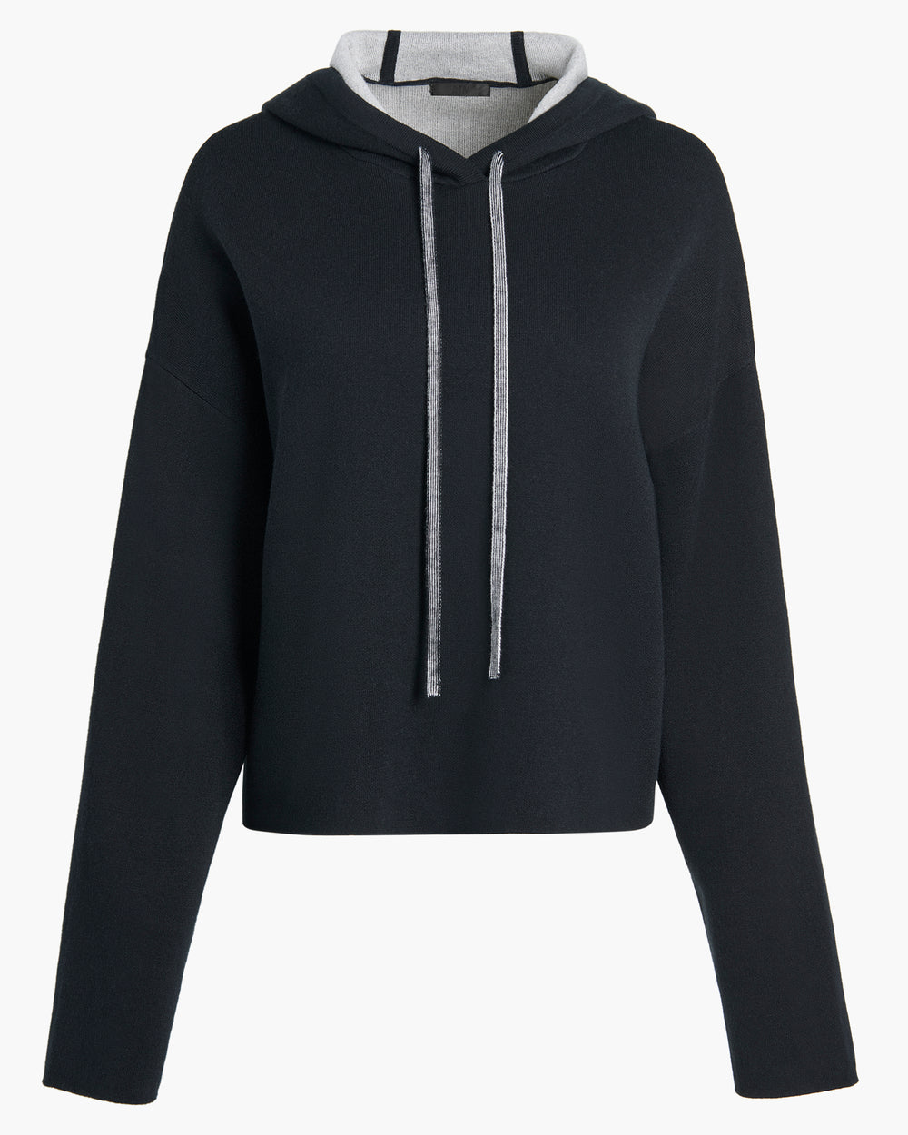Indulge in this two-tone plaited cashmere hoodie, where refined craftsmanship meets effortless elegance. Constructed from premium cashmere yarns, it delivers uncompromising, softness and warmth. The thoughtfully designed details create a polished and easy silhouette that seamlessly elevates your everyday.