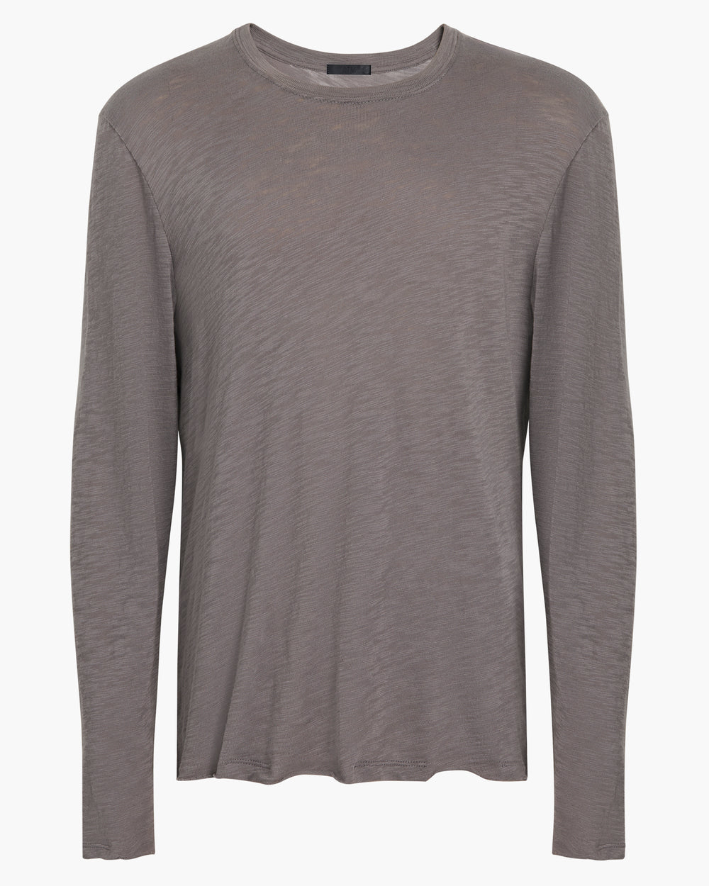 The Slub Jersey Long Sleeve Destroyed Wash Tee is one of creative director Tony Melillo's personal favorite pieces from the essential collection. The top-selling Slub Tee Fabric gets its texture from the uneven heavy yarns of our unique Peruvian Cotton. This Long Sleeve features a relaxed crew neck, distressed hem and sleeve cuffs, and a looser weave that offers the perfect drape.