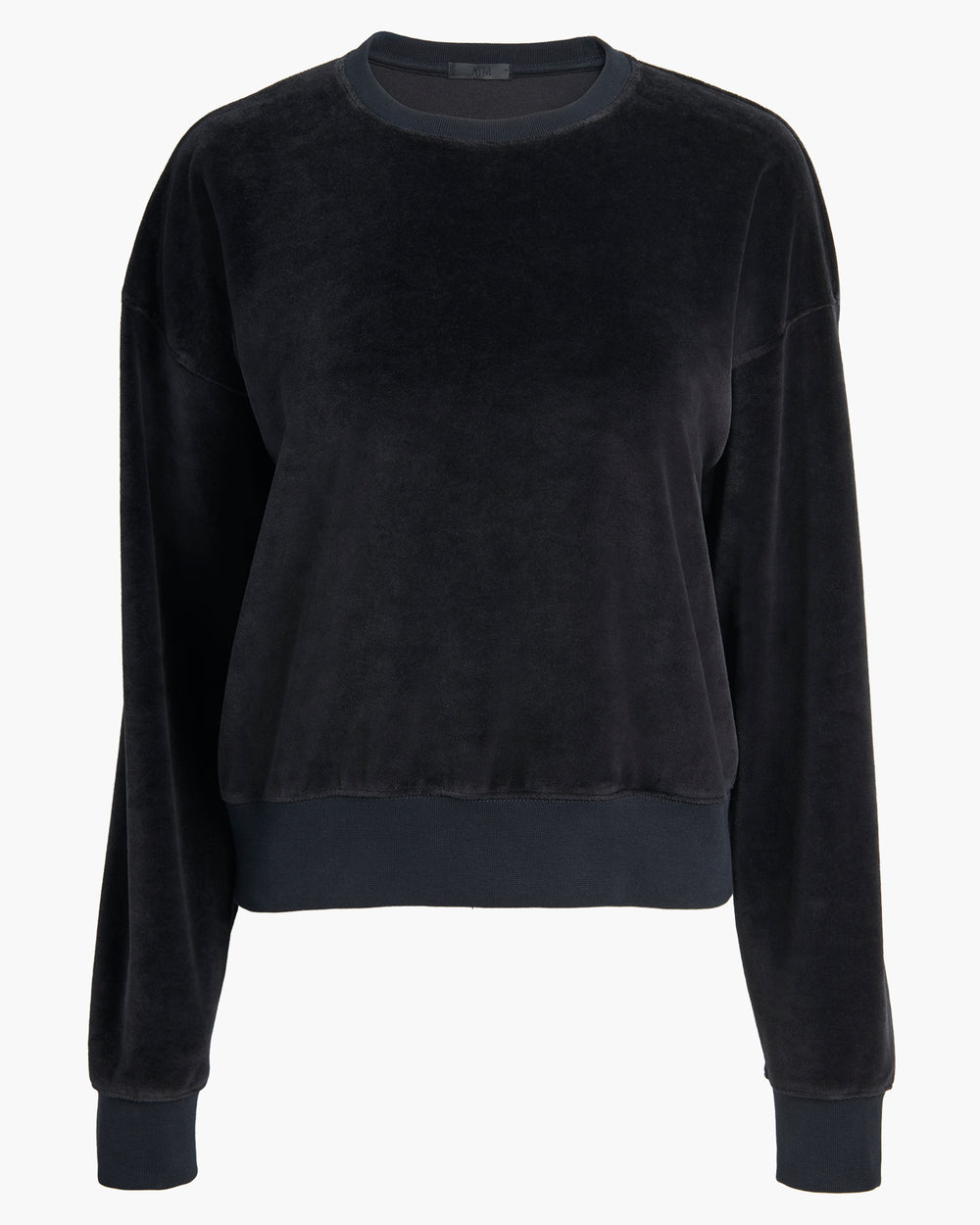 Crafted from sumptuous velour sourced in Peru, this refined crew neck delivers refined comfort and sophistication for the colder months. The luxurious fabric drapes effortlessly while providing exceptional warmth, making it an essential layering piece for your seasonal wardrobe. Pair with our coordinating bottoms for a cohesive, elevated look.